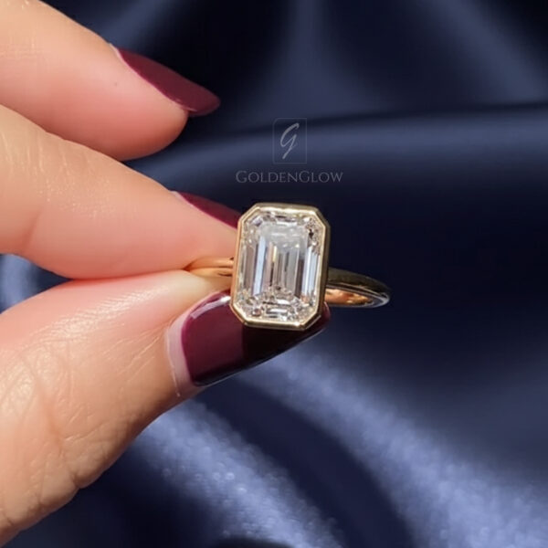 3Ct Emerald Cut Bezel Set Engagement Ring