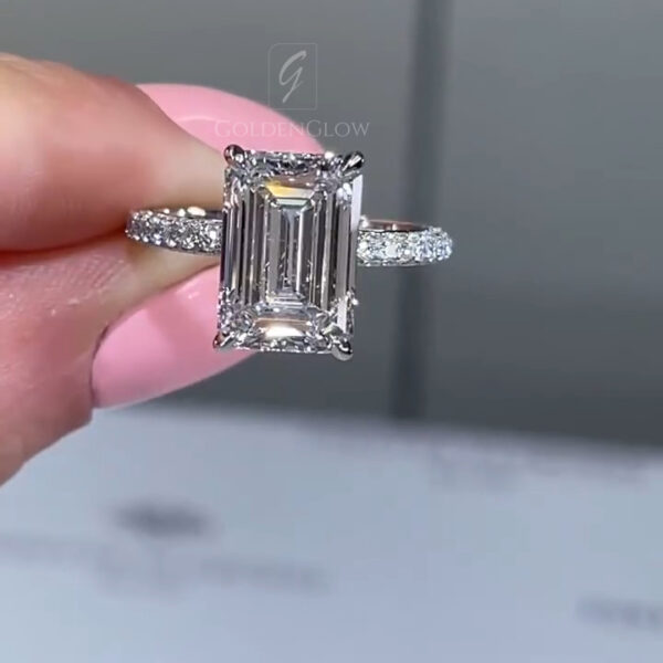 3 Ct Emerald Cut Moissanite Diamond Trilogy Engagement Ring