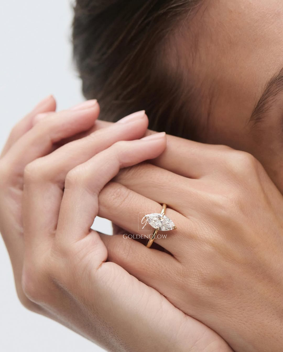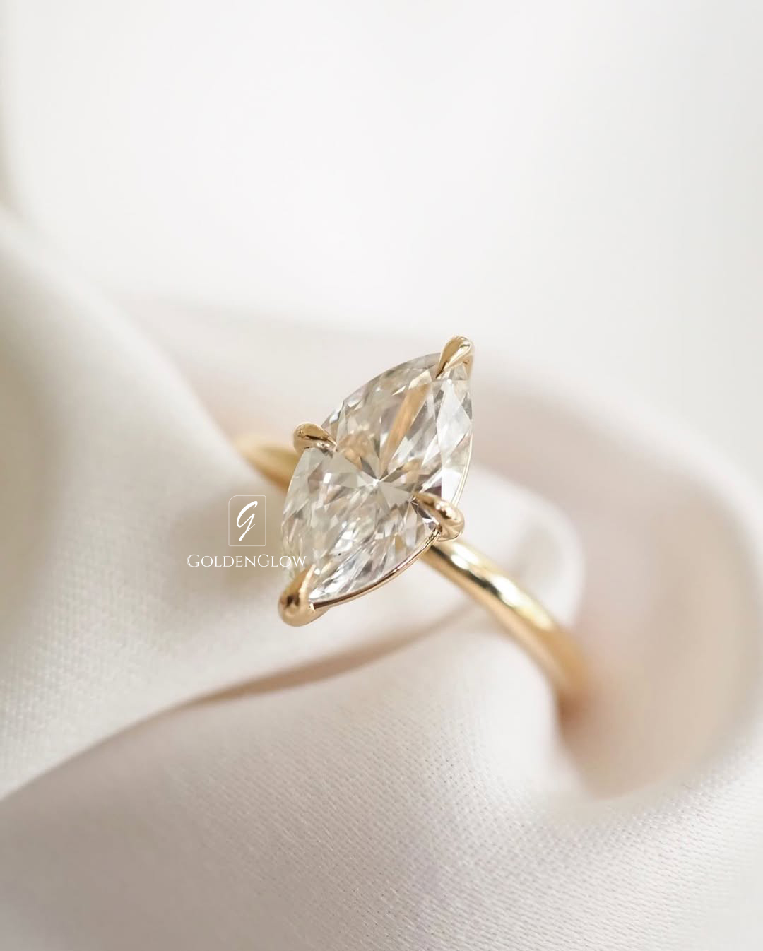 Indulge in luxury with a 1.5 Ct Moissanite / CZ Marquise diamond ring. Handcrafted in 925 silver or 10K, 14K, 18K gold.