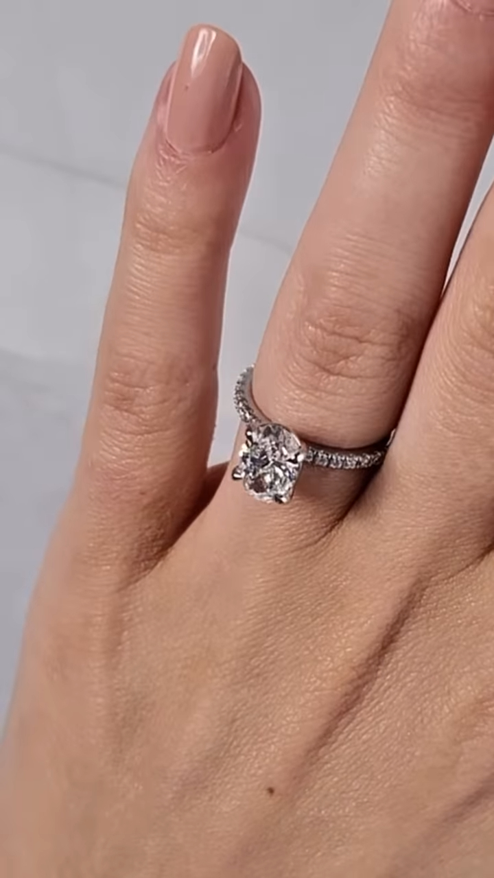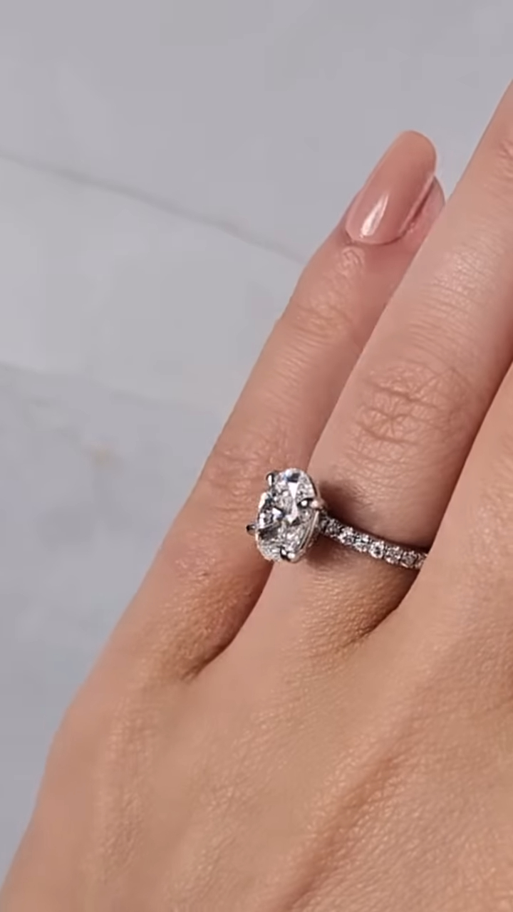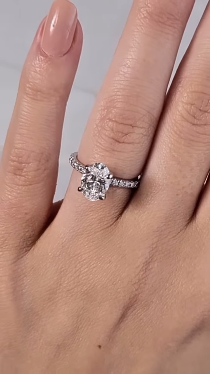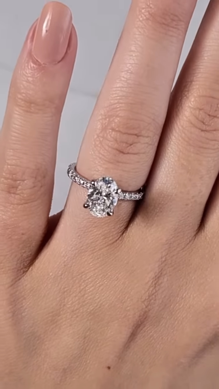 Indulge in luxury with a 1 Ct Moissanite / CZ oval diamond ring. Handcrafted in 925 silver or 10K, 14K, 18K gold.