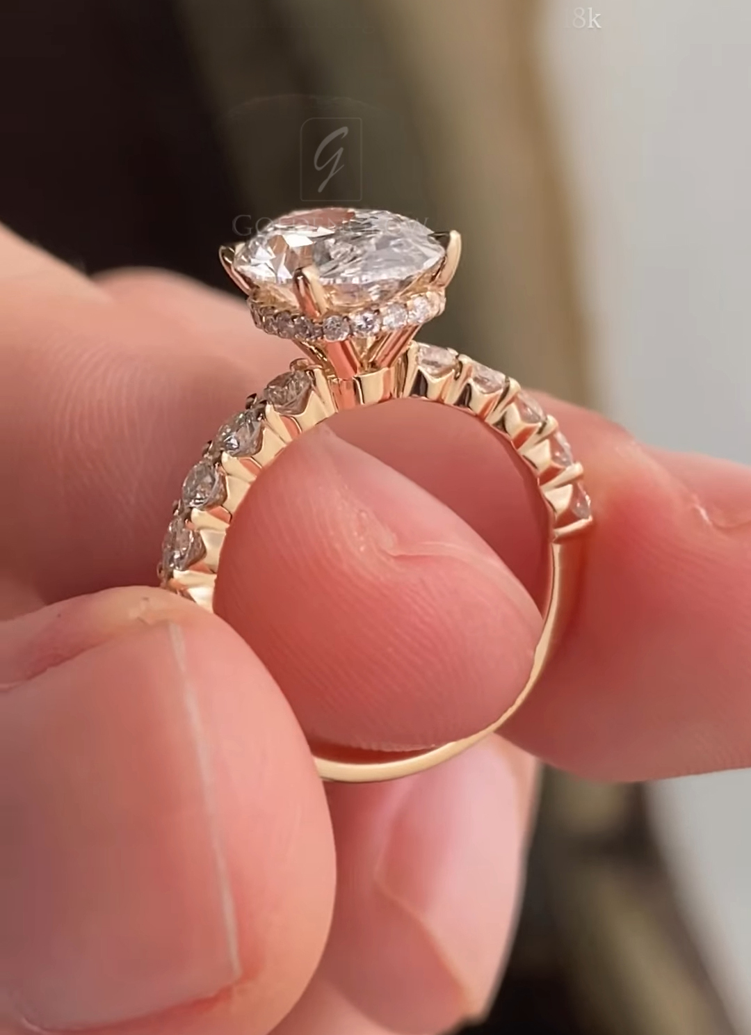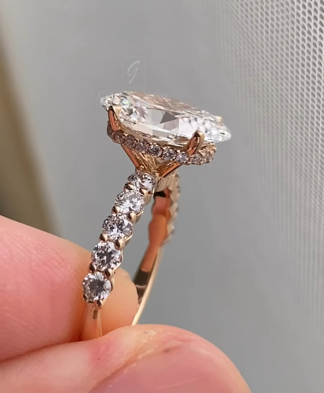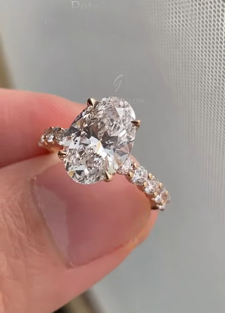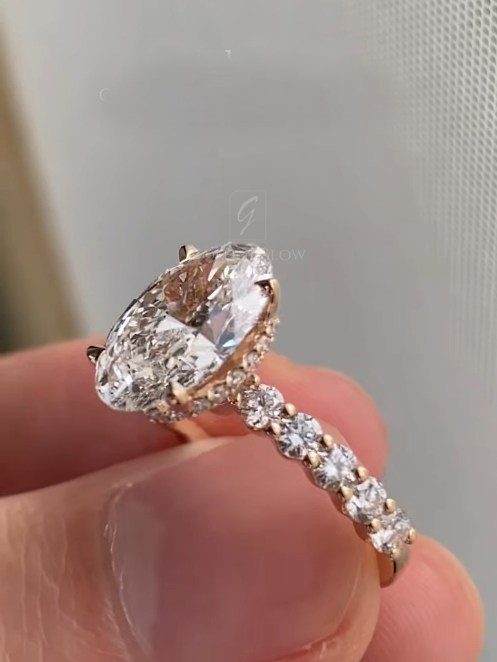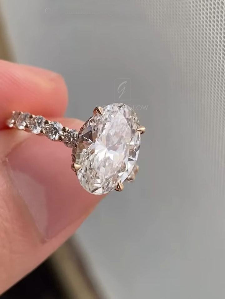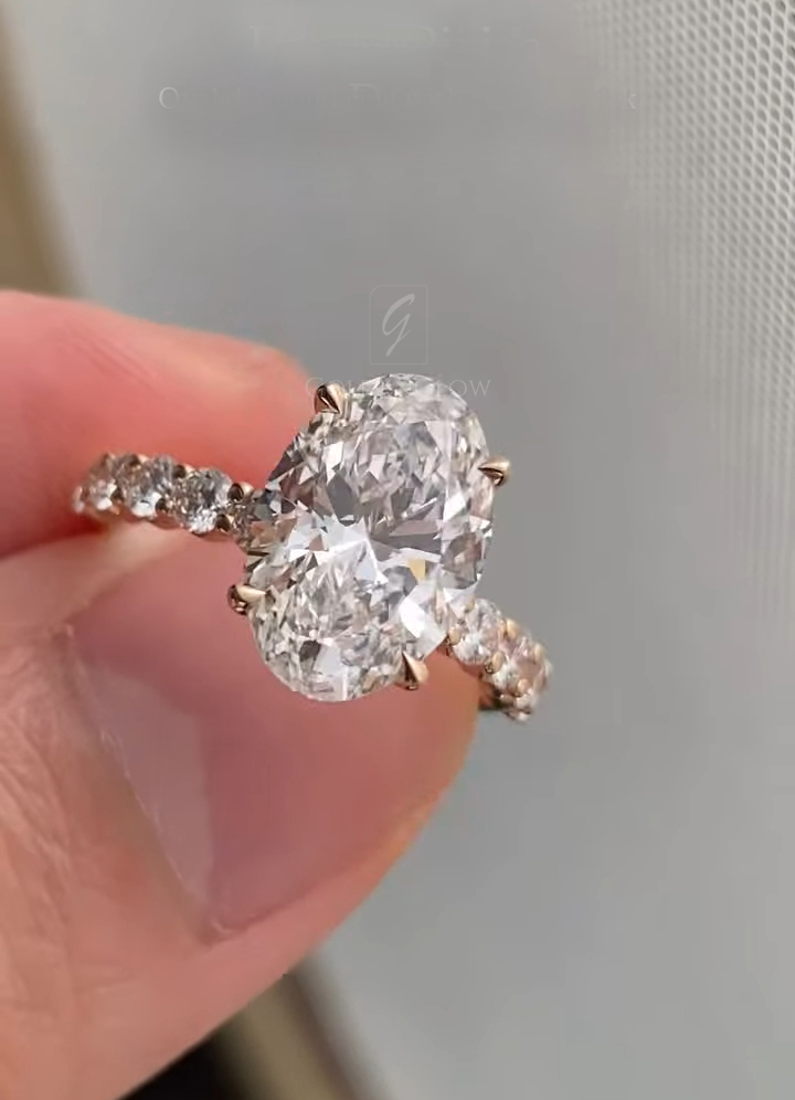 Indulge in luxury with a 2.5 Ct Moissanite / CZ Ovel diamond ring. Handcrafted in 925 silver or 10K, 14K, 18K gold.