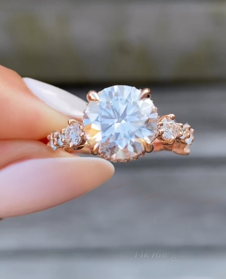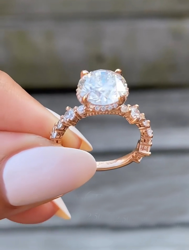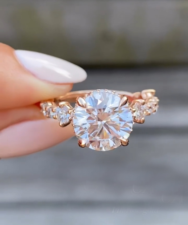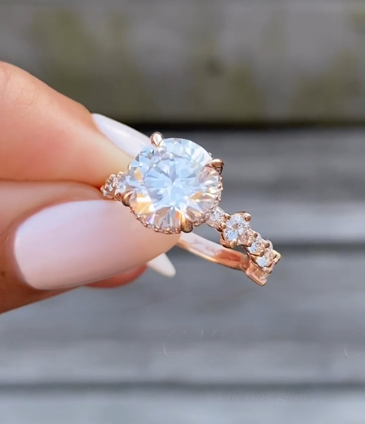 Indulge in luxury with a 2.5 Ct Moissanite / CZ Round diamond ring. Handcrafted in 925 silver or 10K, 14K, 18K gold.