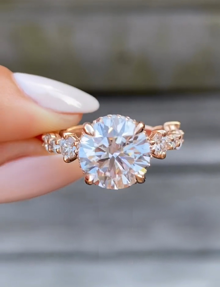 Round Brilliant Cut Engagement Ring • Three Stone Diamond Ring • Rose Gold Classic Bridal Ring • Elegant Anniversary Jewelry