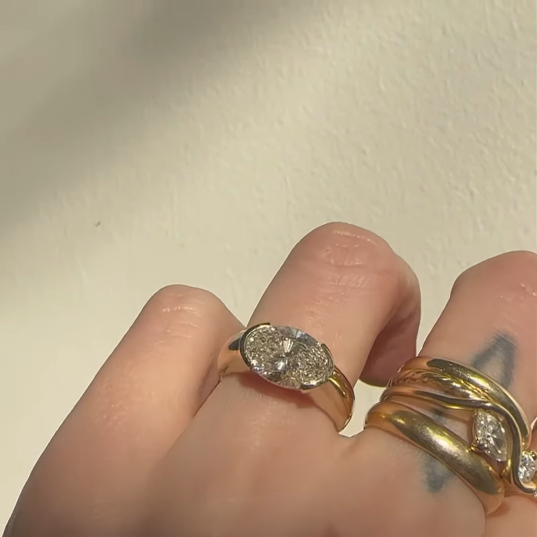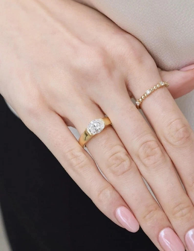 2ct Moissanite / CZ Oval Cut Diamond Ring, Engagement Ring, 2ct Oval Cut Eest West Ring, Gift For her, Anniversary Gift, Unique Bridal Ring, Oval Ring