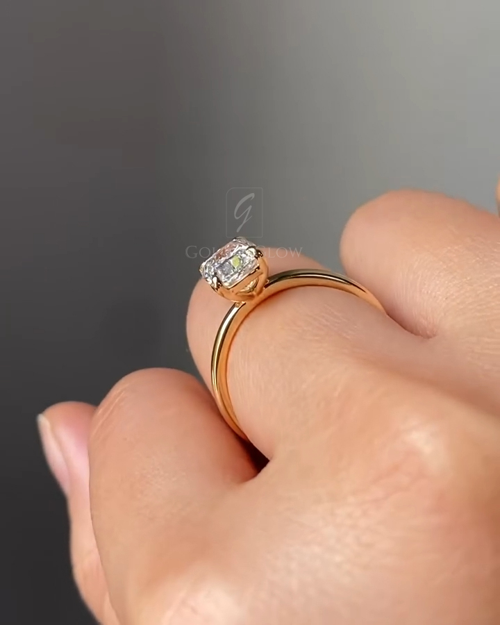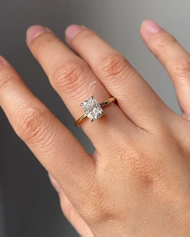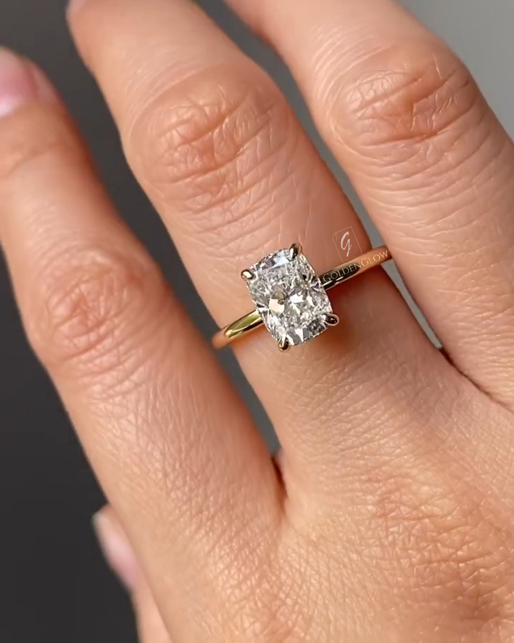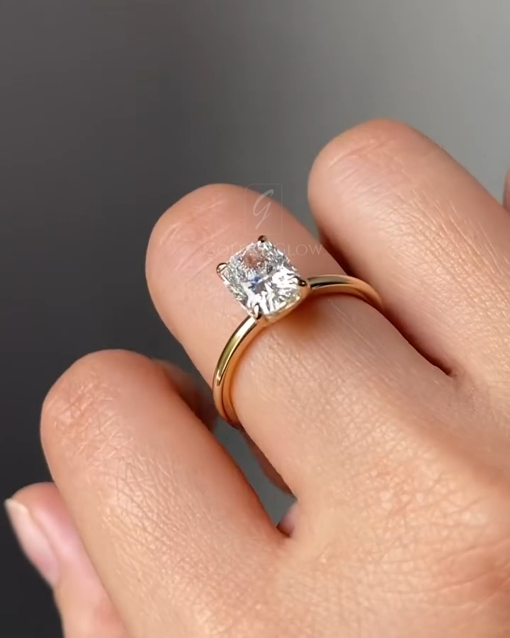 Indulge in luxury with a 2 Ct Moissanite / CZ Cushion cut diamond ring. Handcrafted in 925 silver or 10K, 14K, 18K gold.