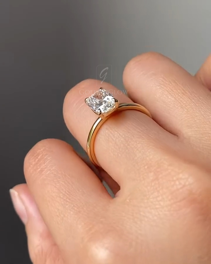 2ct Solitaire Cushion Cut Moissanite Diamond Ring
