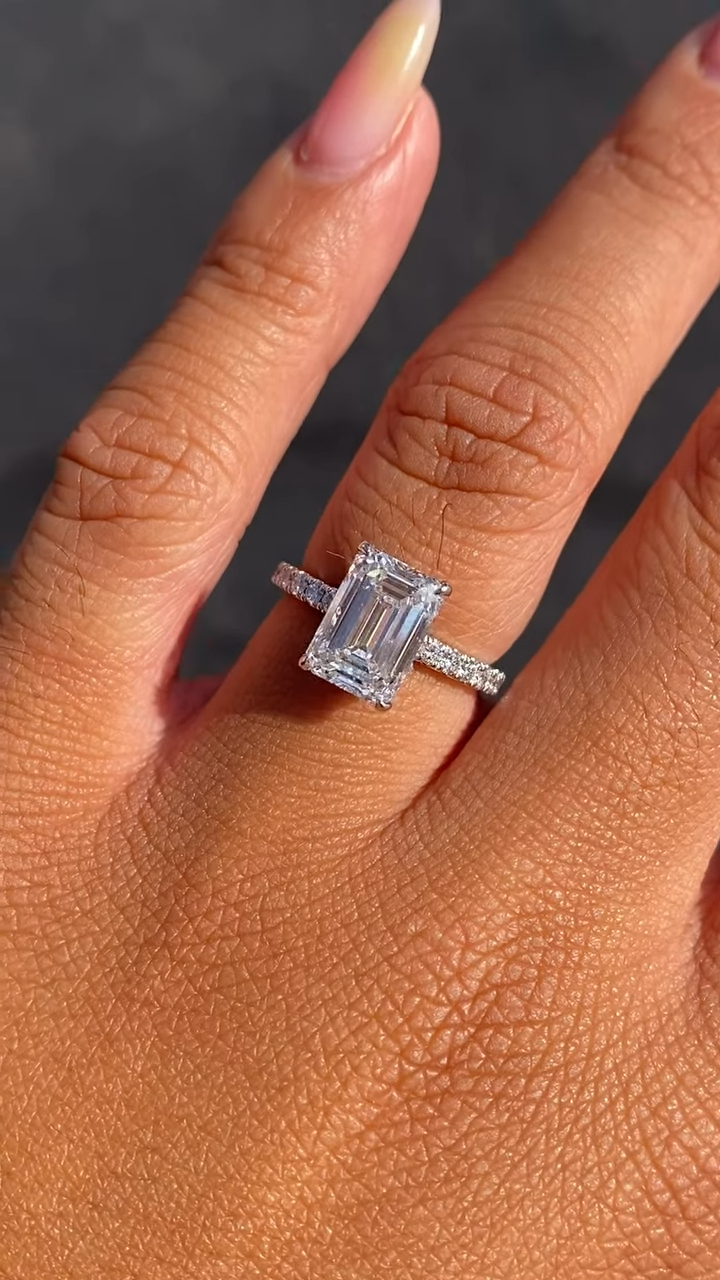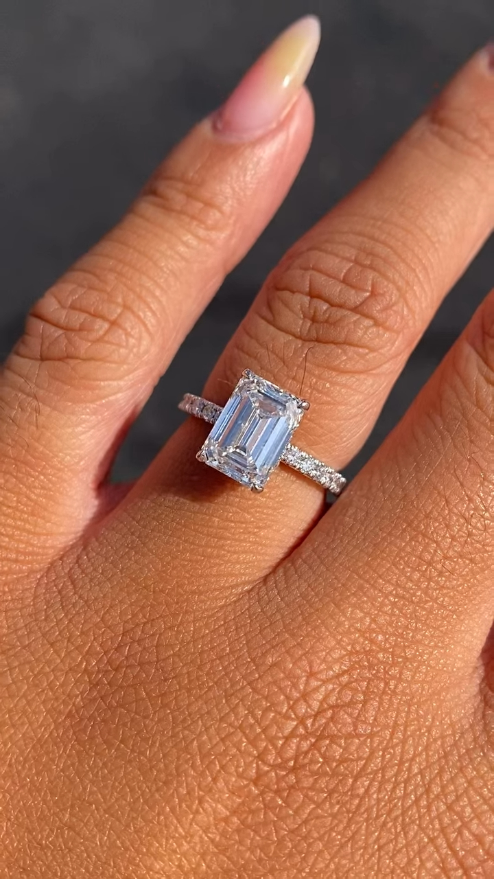 Indulge in luxury with a Moissanite Emerald diamond ring. Handcrafted in 925 silver or 10K, 14K, 18K gold.