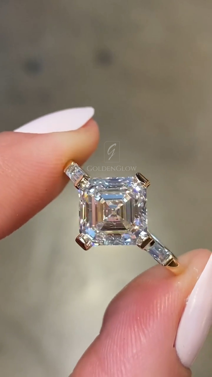 3Ct Asscher Cut Diamond Elegant Pave Engagement Ring