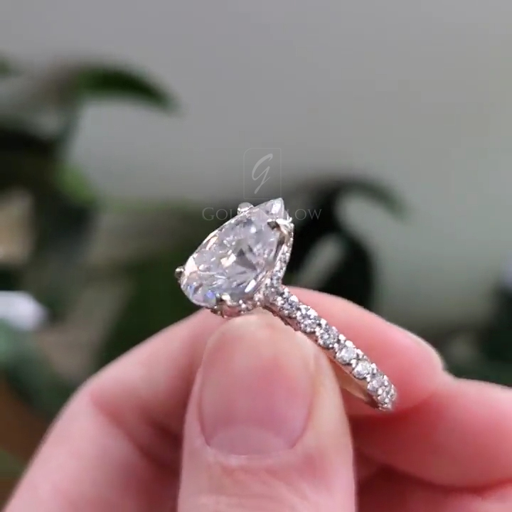 Indulge in luxury with a 3Ct Moissanite / CZ Pear diamond ring. Handcrafted in 925 silver or 10K, 14K, 18K gold.