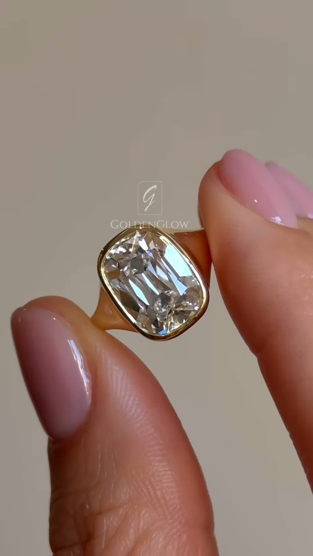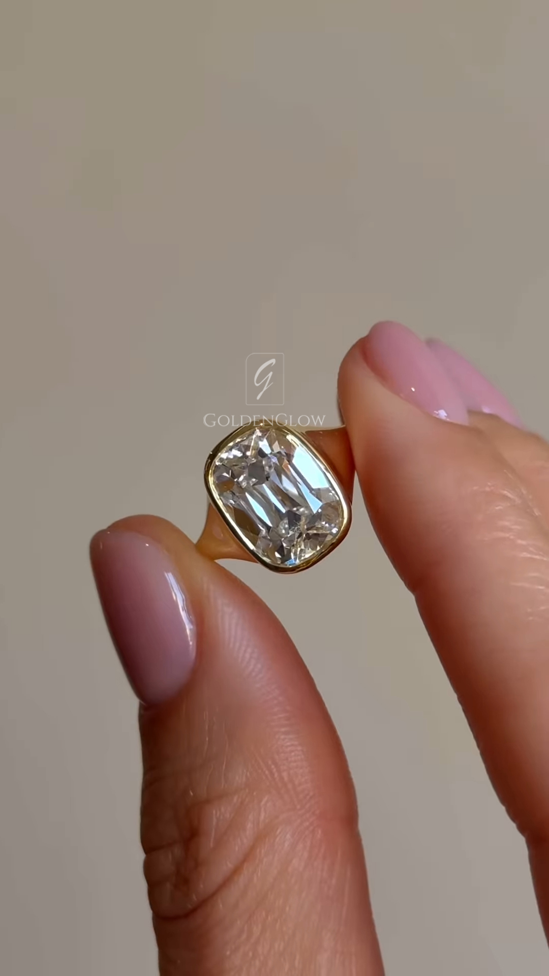 Indulge in luxury with a 4 Ct Moissanite / CZ bezel set Cushion cut diamond ring. Handcrafted in 925 silver or 10K, 14K, 18K gold.