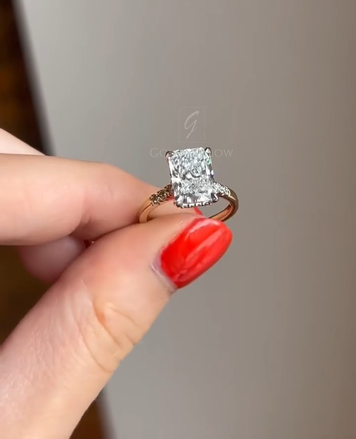 Indulge in luxury with a 3.5 Ct Moissanite / CZ Radiant diamond ring. Handcrafted in 925 silver or 10K, 14K, 18K gold.