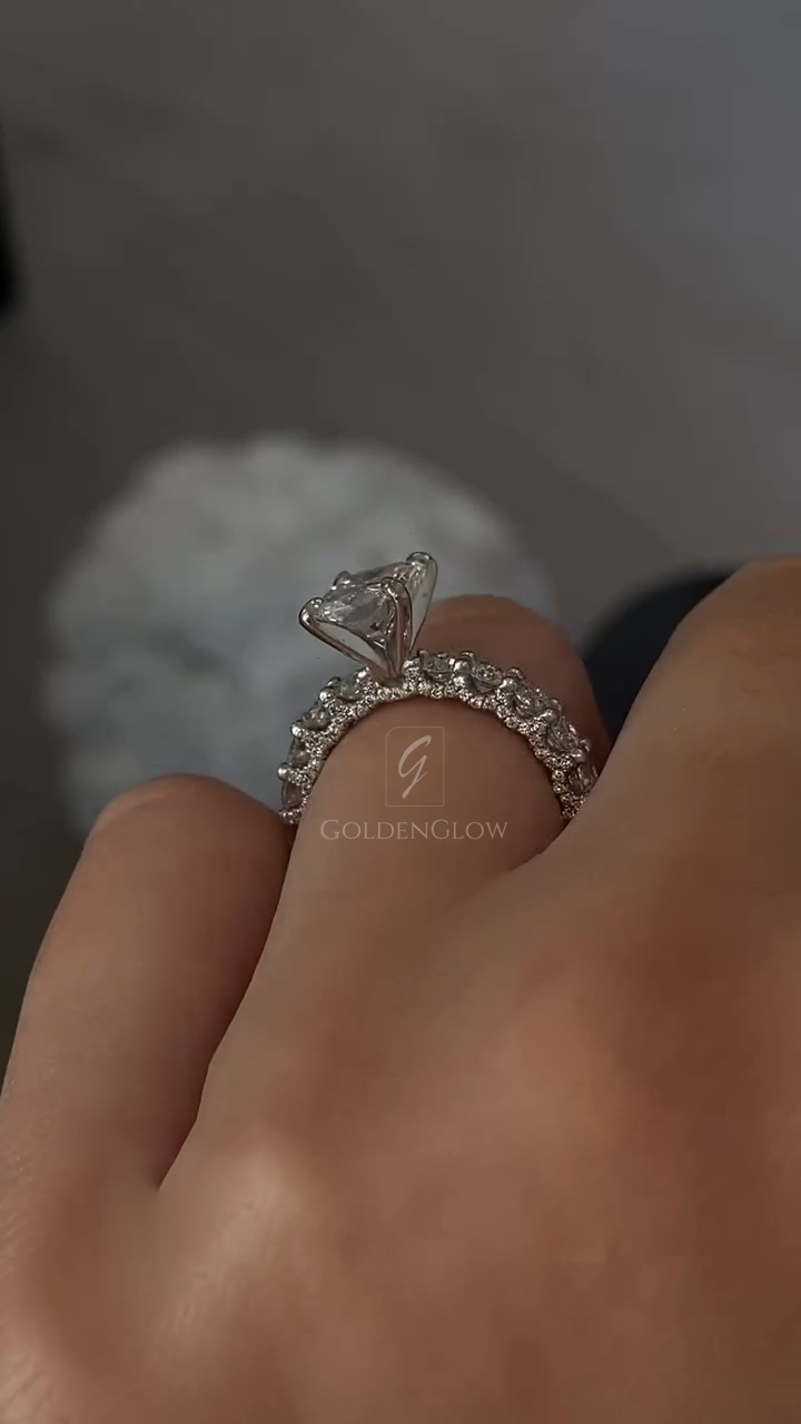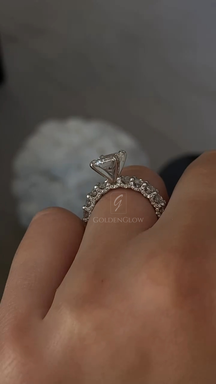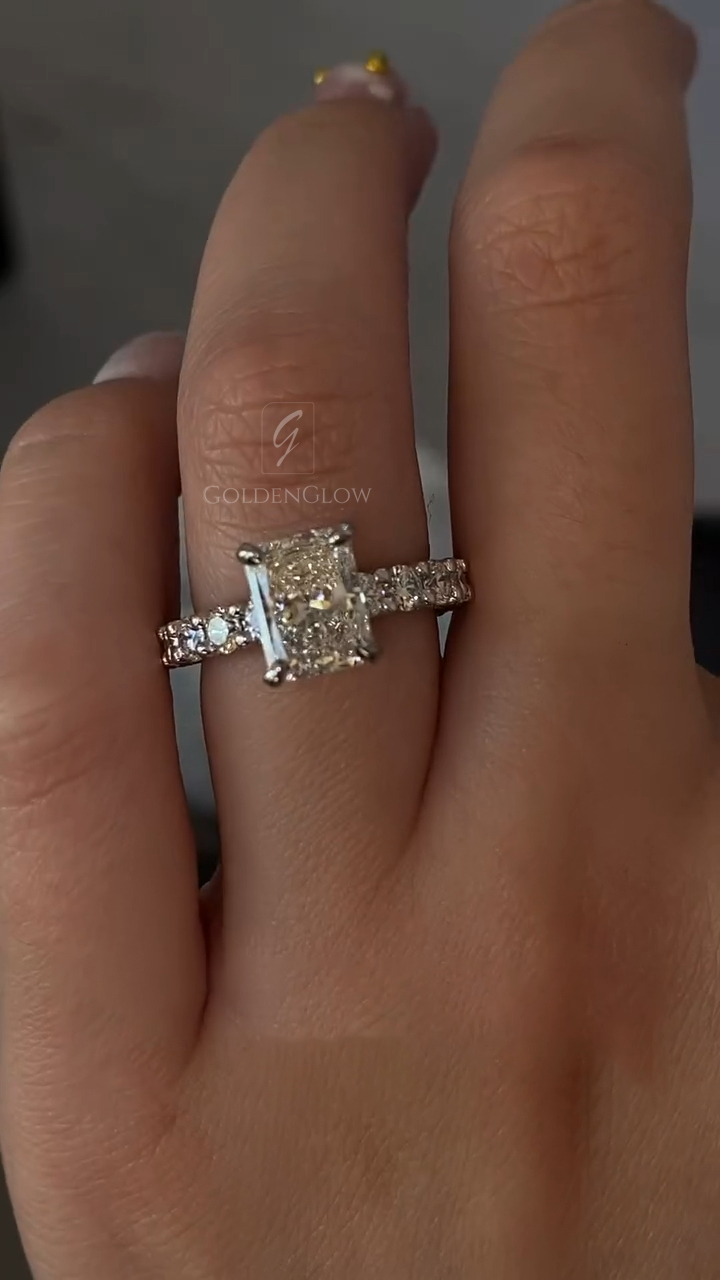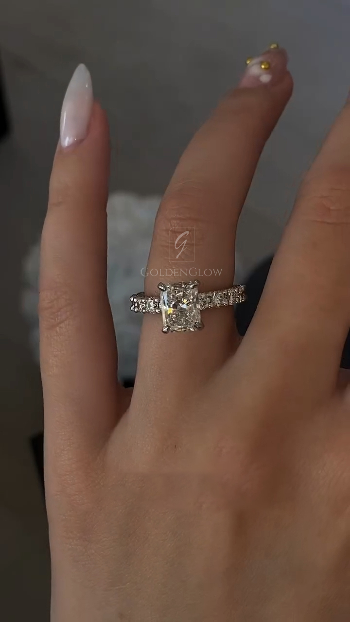 Indulge in luxury with a Moissanite / CZ Radiant diamond ring. Handcrafted in 925 silver or 10K, 14K, 18K gold.