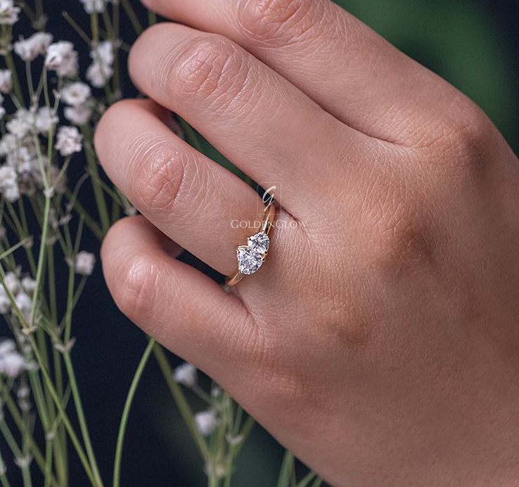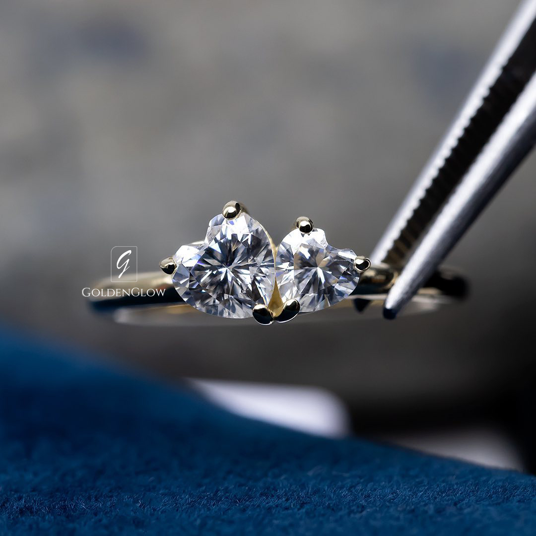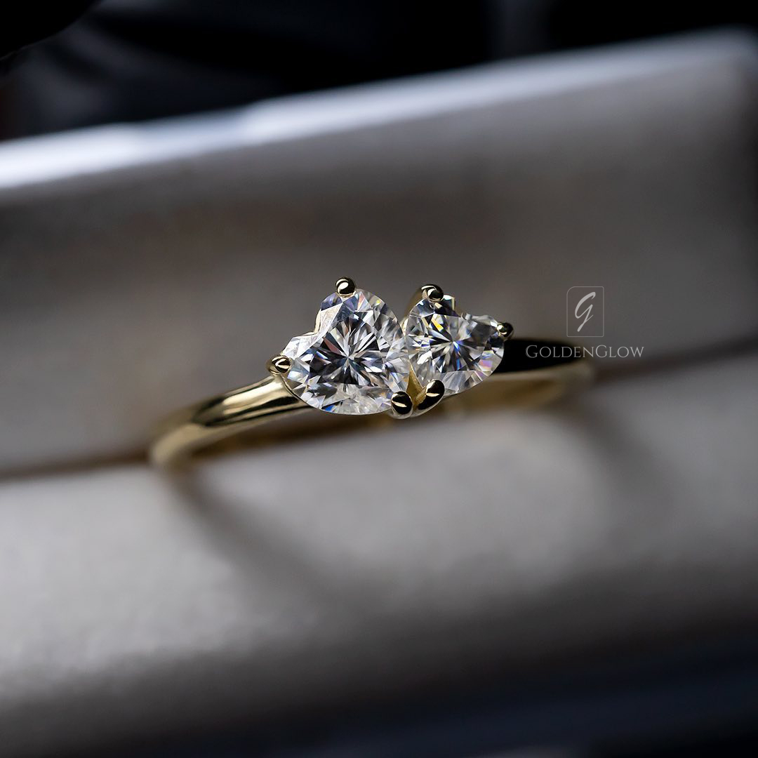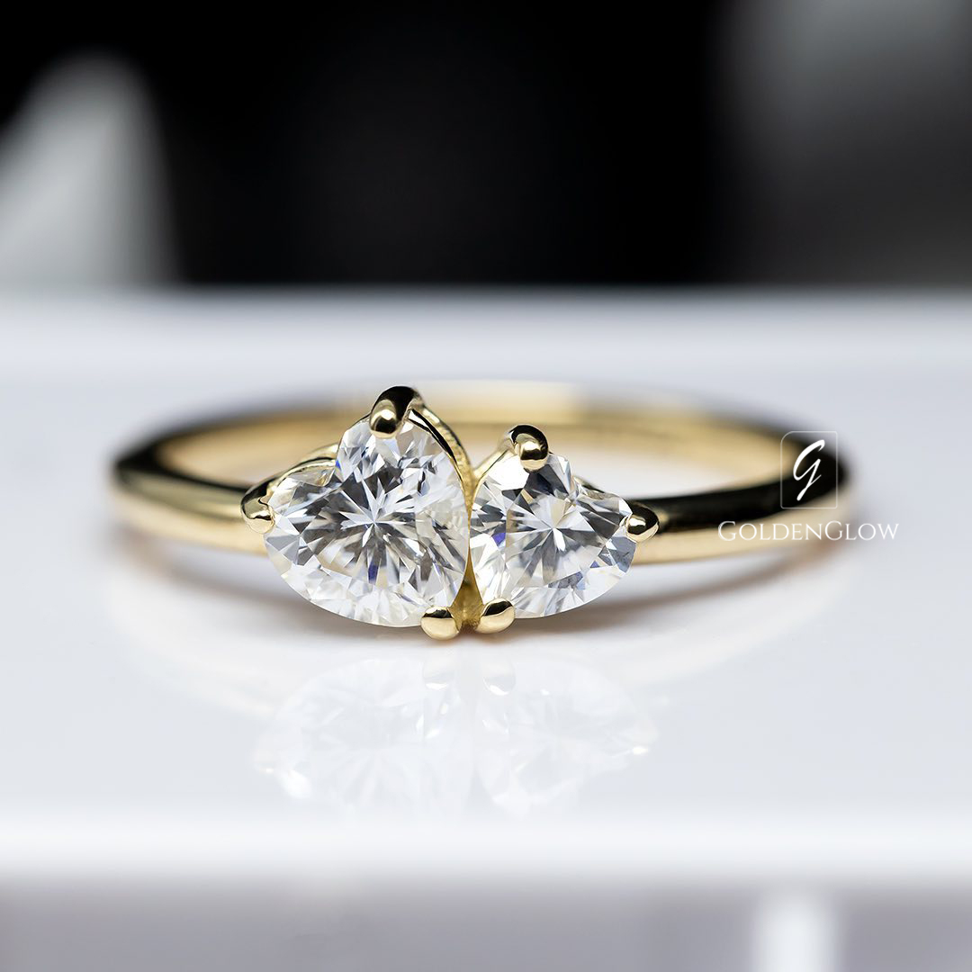 Toi et Moi Heart shaped Moissanite / CZ Engagement Ring, Double Stone Gold Ring, Toi et Moi Ring for Women, Gift For her, Bridal Ring.